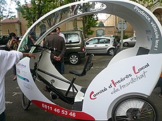 Vous connaissez le cyclopolitain, ce « pousse-pousse » lyonnais mis en place ds la presqu’ile depuis quelques 3 ans par deux jeunes entrepreneurs de talent ? ces vélo-taxis électriques capables de transporter deux passagers sont principalement utilisés pour des parcours très courts et particulièrement appréciés par les retraités. Il avait ainsi inspiré la ville de Villeurbanne, qui avait mis en place en mai 2007 un service de cyclopousse à destination des personnes âgées…