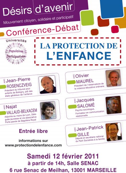 A l’invitation de Désirs d’avenir, j’intervenais ce samedi à Marseille dans une Université Populaire Participative consacrée à la protection de l’enfance, sujet essentiel s’il en est, et sur lequel Ségolène Royal avait eu l’occasion de mener à bien un nombre remarquable de réformes en sa qualité de ministre de l’enfance et de la famille dans les années 2000… le soufflé est tristement retombé ces dernières années.
