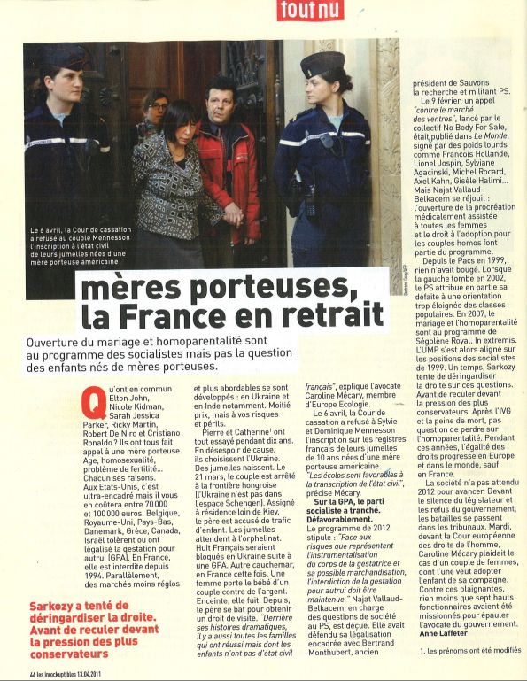 “Mères porteuses, la France en retrait” dans Les Inrockuptibles