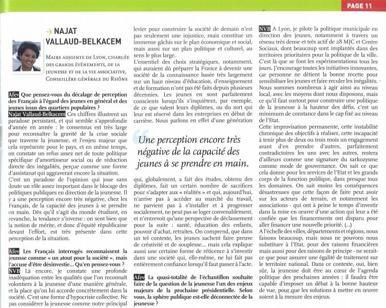 Entretien pour l’Observatoire Jeunesse de l’AFEV 2011