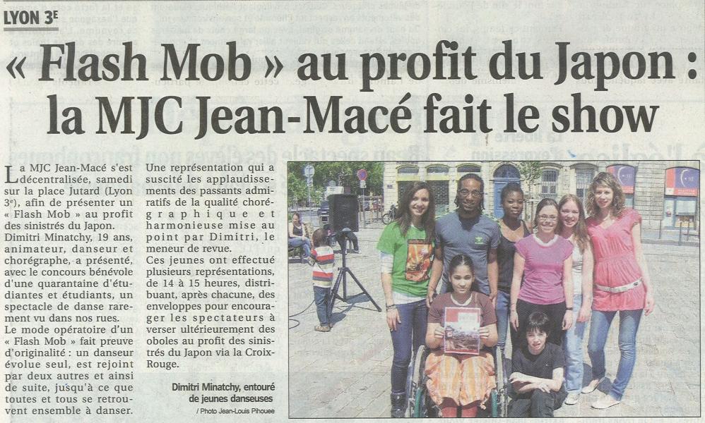 Coup de coeur cette semaine pour les MJC de Lyon, je vous en parle souvent et je les soutiens avec raison en ma qualité d’adjointe. Pendant ce long week-end de Pâques, elles n’ont pas chômé…La MJC Jean-Macé a lancé un Flash Mob sous le signe de la solidarité avec le Japon, l’Espace 6 MJC a multiplié les excellentes performances sportives des jeunes, et à La Sauvegarde et La Duchère c’est le ludique, le divertissement et la découverte qui ont été au centre des activités avec des ateliers de cirque, de photos, d’art ethnique, du Tennis et du football… Bravo aux initiateurs de ces belles opportunités pour les jeunes lyonnais.