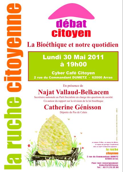 Organisé par La Ruche citoyenne, le débat réunissait Catherine Génisson, députée socialiste du Pas-de-Calais, et Najat Vallaud-Belkacem, secrétaire nationale du PS en charge des questions de société et co-auteur du rapport sur la révision de la loi bioéthique.
