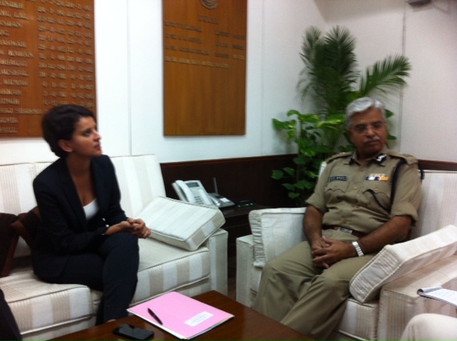 Avec le responsable de la police de New-Dehli pour parler de lutte contre les violences faites aux femmes.
