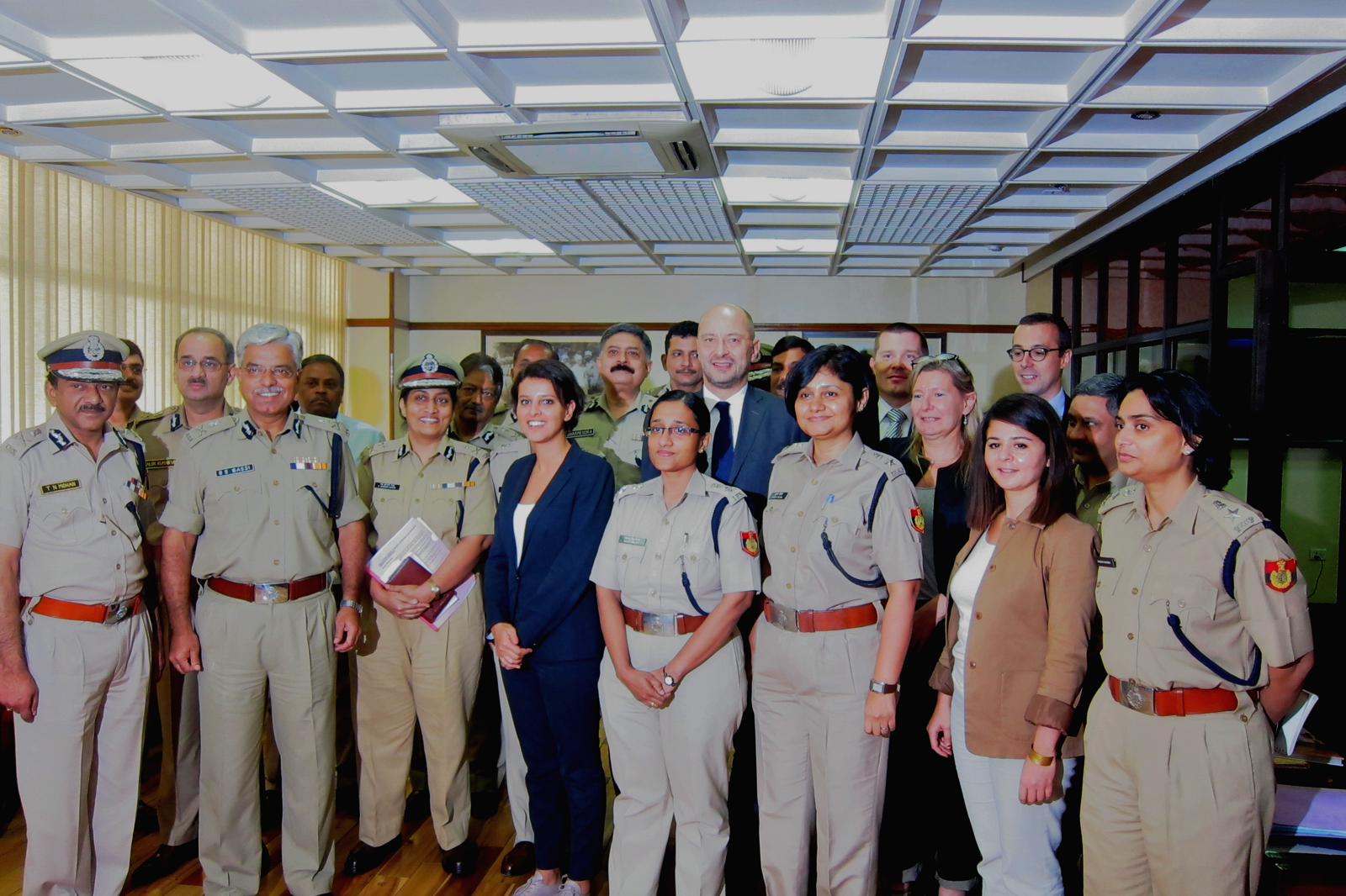 Avec les policières et policiers de New-Dehli qui luttent contre les violences faites aux femmes.