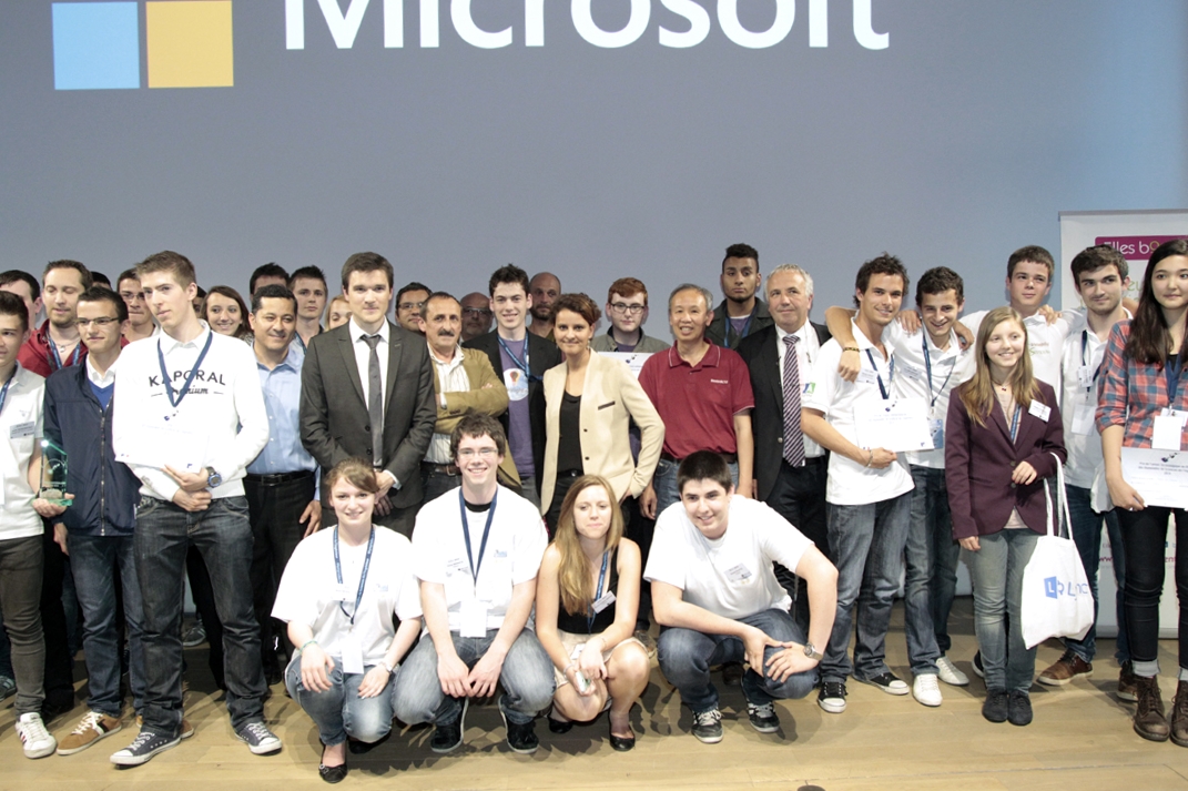 Najat Vallaud-Belkacem s’est rendue au siège de Microsoft, ce mercredi 21 mai, pour remettre aux lauréats les prix de la finale nationale des Olympiades de Sciences de l'Ingénieur 2014 et encourager les lycéennes à se lancer dans le métier d’ingénieure.