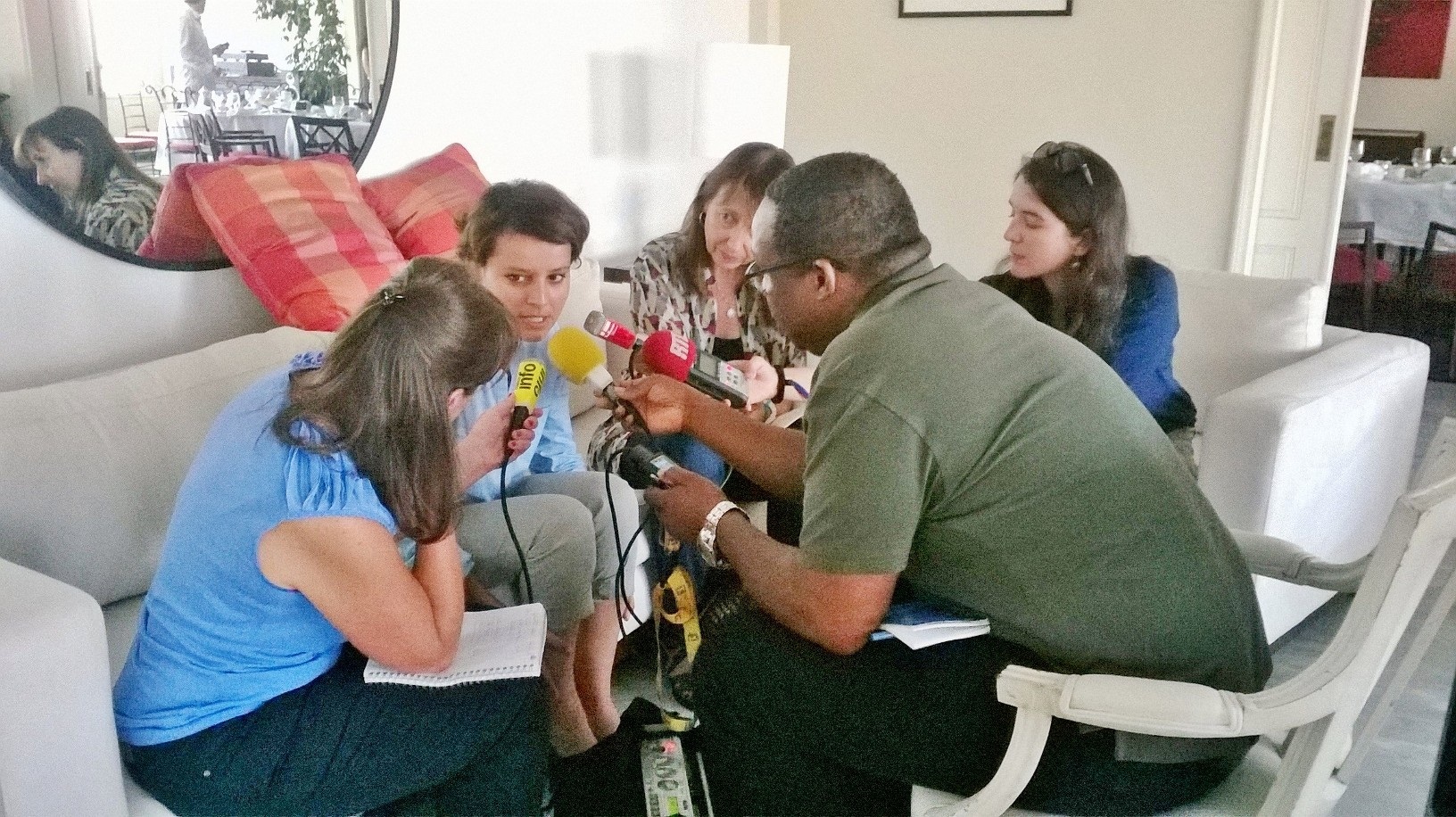 De même, Najat Vallaud Balkacem a effectué plusieurs rendez-vous presse. Elle est notamment intervenue sur plusieurs chaines de télévision le jour du match (BFMTV, Itélé, Canal+, France 24) et a reçu les journalistes pour un petit-déjeuner de presse le samedi 5 juillet, en présence de professionnels de Sofoot, l’Equipe, France Info, France Télévision Outre-Mer, AFP, RFI, Brésil21.tv, 20Minutes. Elle a également été l’invitée de Philippe Rebuchon sur RTL, samedi à 18h (heure française). À l’occasion de ces rencontres médiatiques, Mme Najat Vallaud-Belkacem a eu l’opportunité de féliciter les Bleus pour leur beau parcours durant ce Mondial2014 et a donné rendez-vous aux supporters pour l’Euro2016. La Ministre a également salué l’organisation de la Coupe du Monde, qui « servira d’exemple dans les préparatifs de l’Euro2016 ».