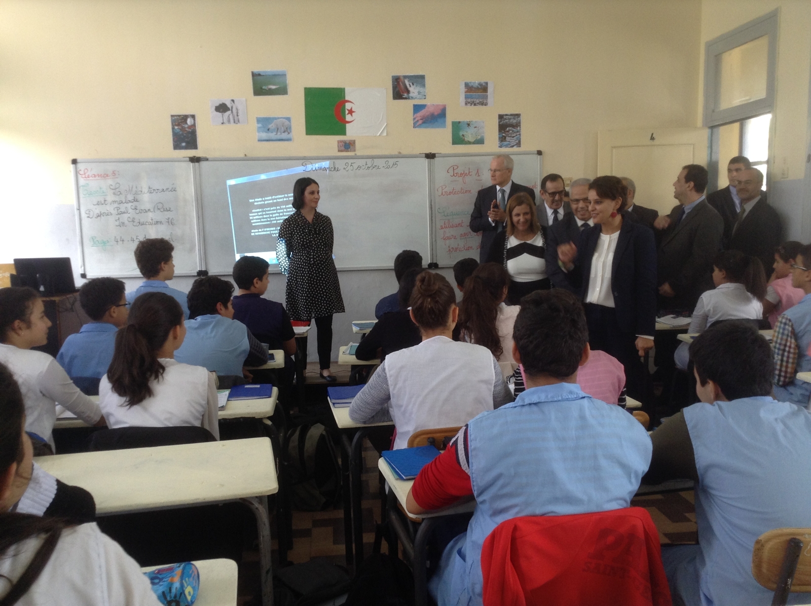 La ministre s’est rendue au collège Mohamed Chouiter d’Alger où les élèves travaillent sur le développement durable à l’approche de la ‪#‎COP21‬.