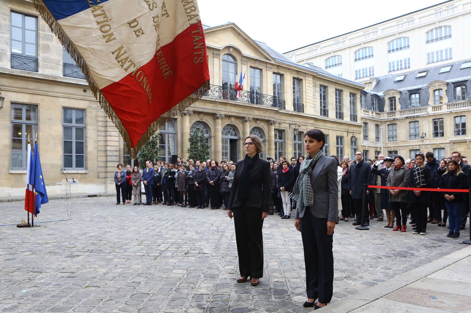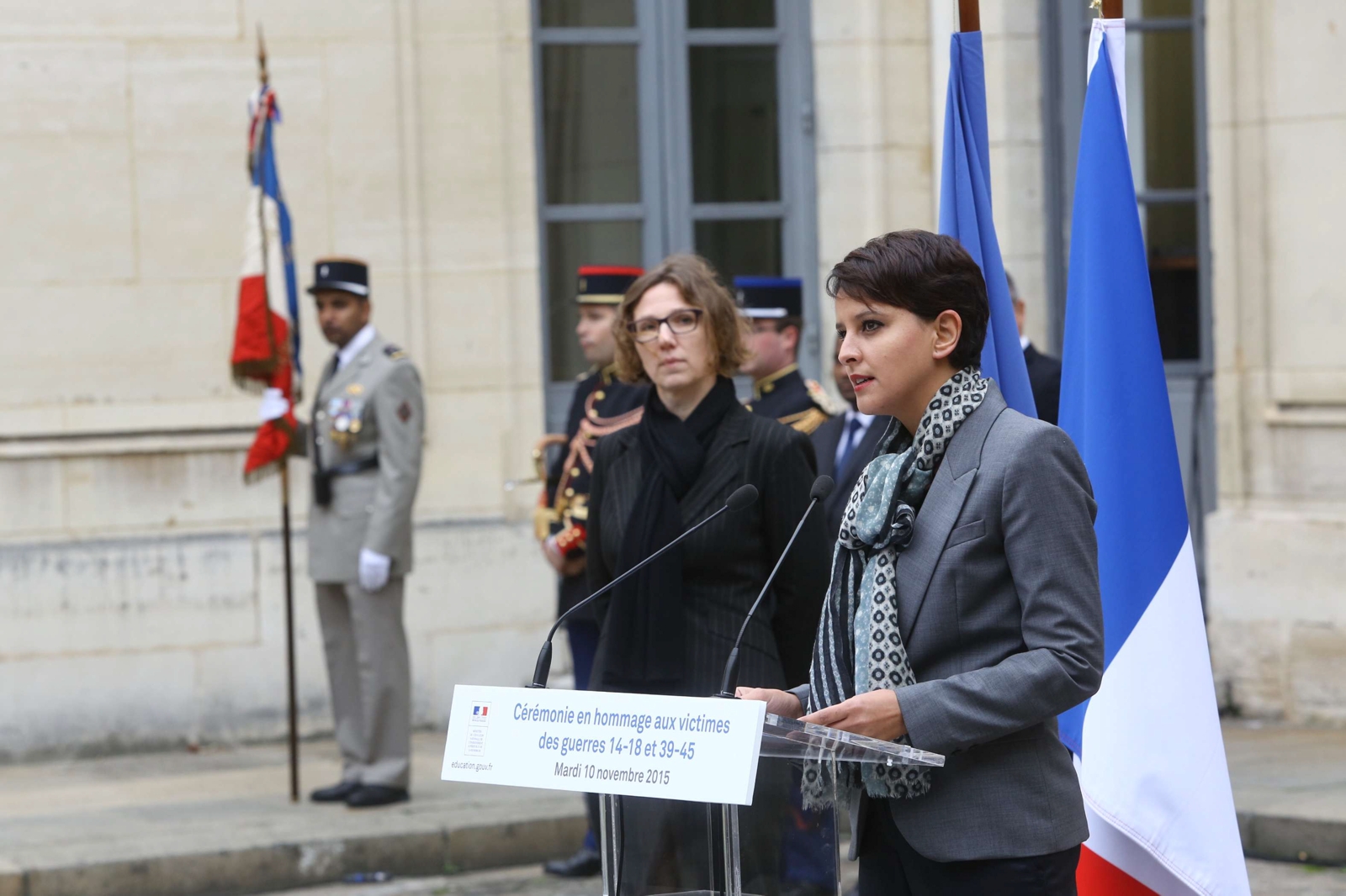 Ce mardi 10 novembre 2015, Najat Vallaud-Belkacem a rendu hommage aux combattants et aux victimes de la première guerre mondiale et de la seconde guerre mondiale, à nos morts en réunissant l’ensemble de son cabinet, l’ensemble des Recteurs, les inspections générales et directions centrales du Ministère de l’Éducation nationale, de l’Enseignement supérieur et de la Recherche.
