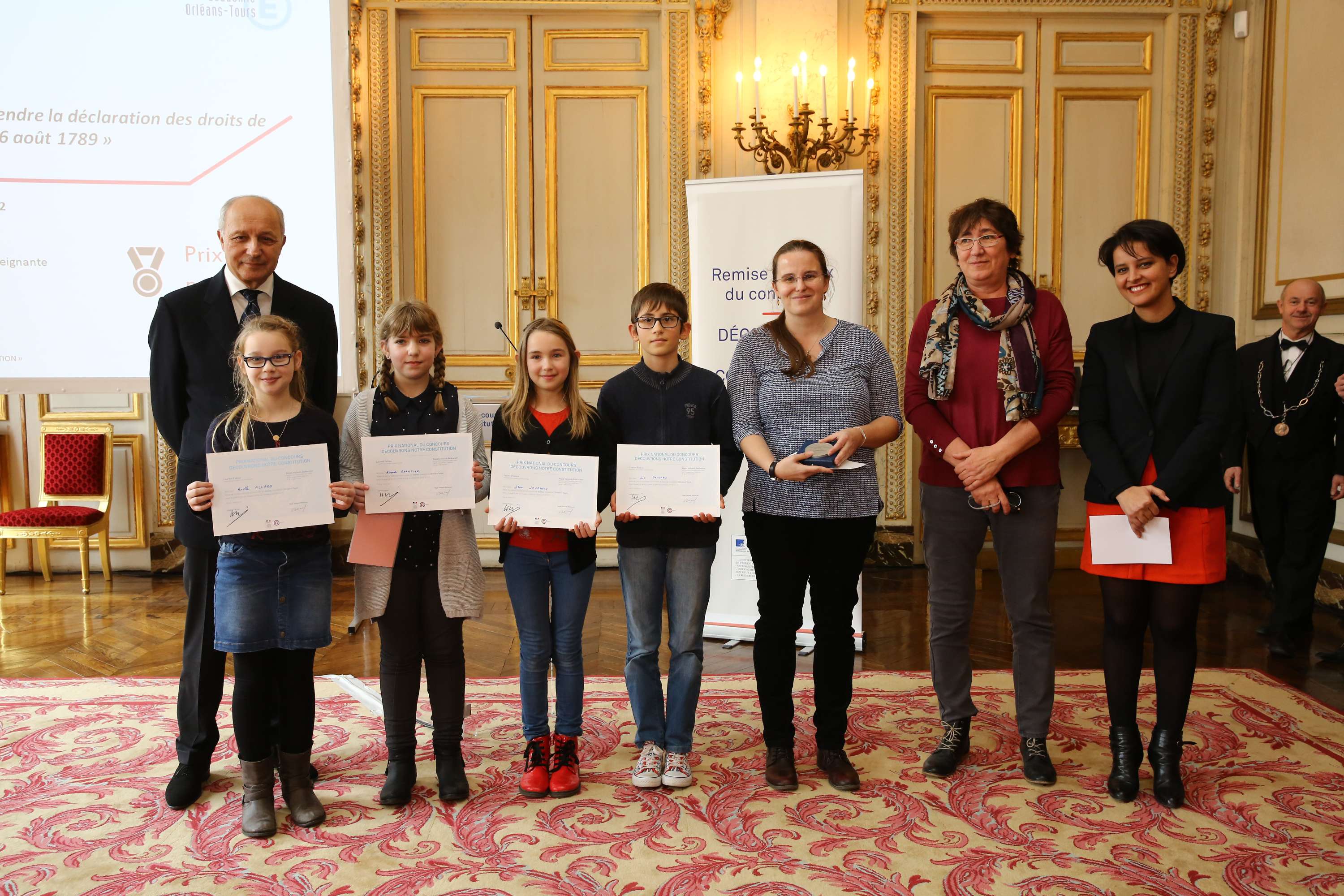 Un prix a été décerné aux élèves de CM1-CM2 de l’école primaire de Sassay (Loir-et-Cher, académie d’Orléans-Tours) pour : “Des Histoires pour comprendre la déclaration des droits de l’homme et du citoyen du 26 août 1789”.