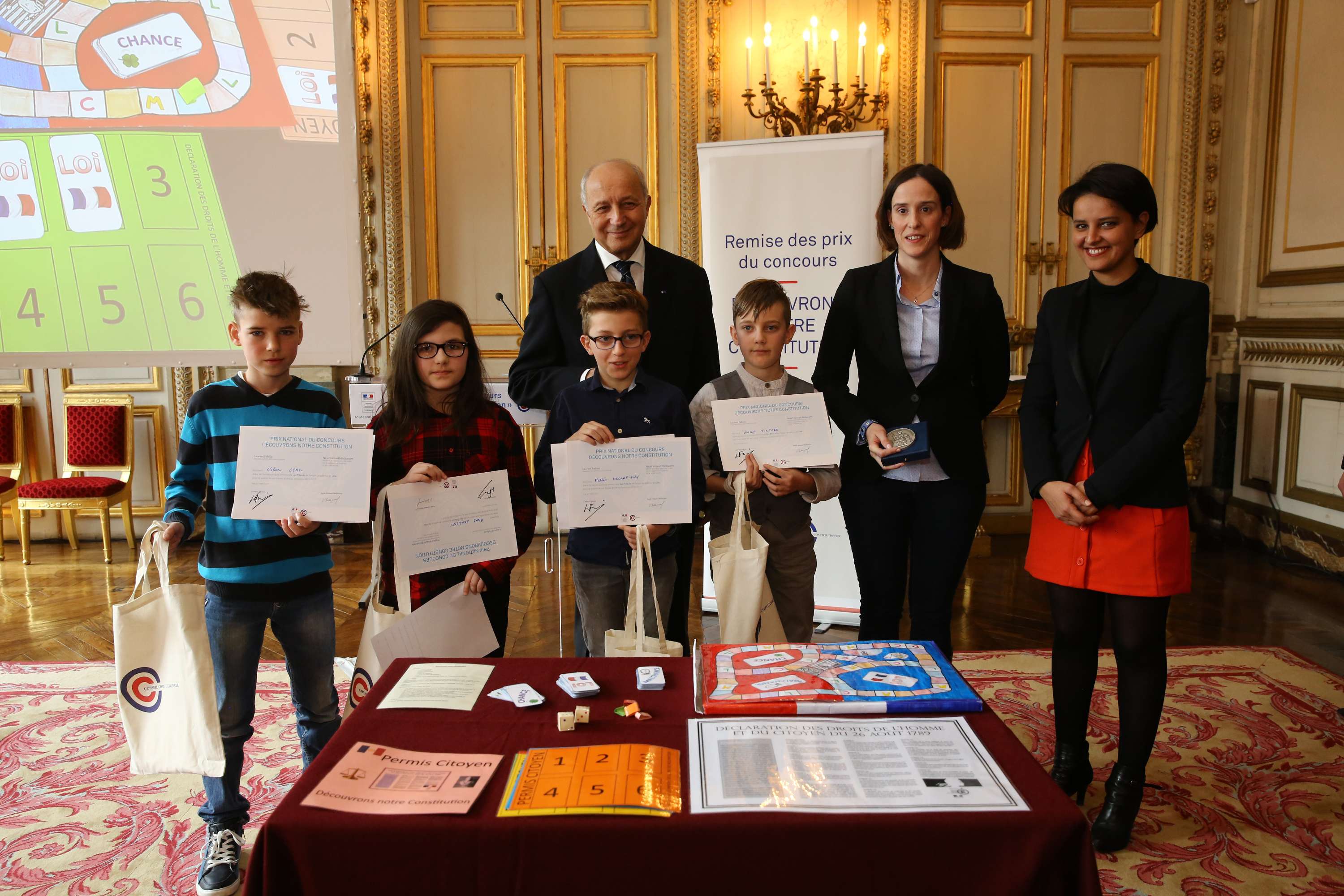 Laurent Fabius et Najat Vallaud-Belkacem remercient l’ensemble des équipes enseignantes qui se sont engagées dans ce concours pour sensibiliser les élèves aux grands principes constitutionnels de la République et leur permettre de les rendre concrets.